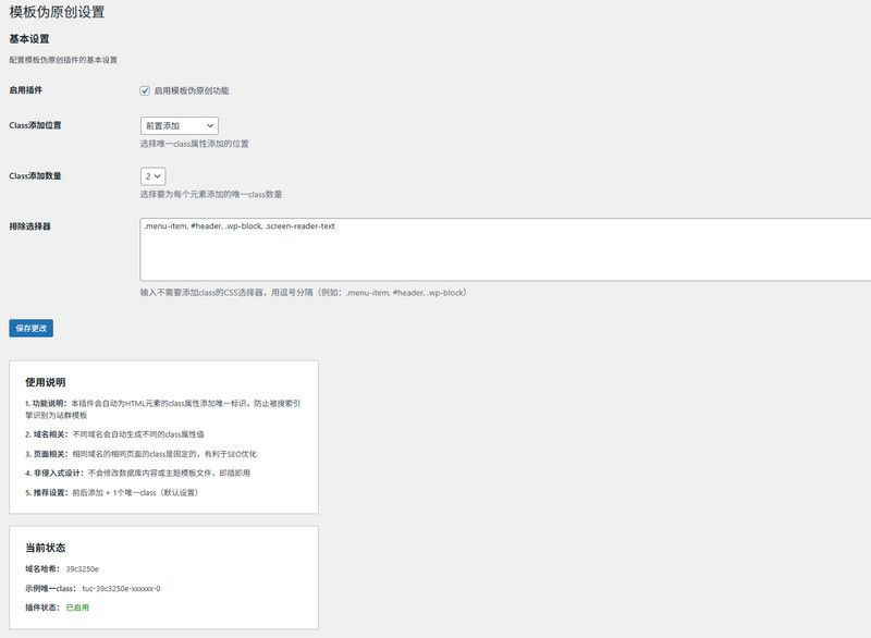 WordPress模板伪原创插件V1.0.1,一款智能WordPress插件,自动为网站模板添加唯一标识,防止被搜索引擎识别为站群模板。