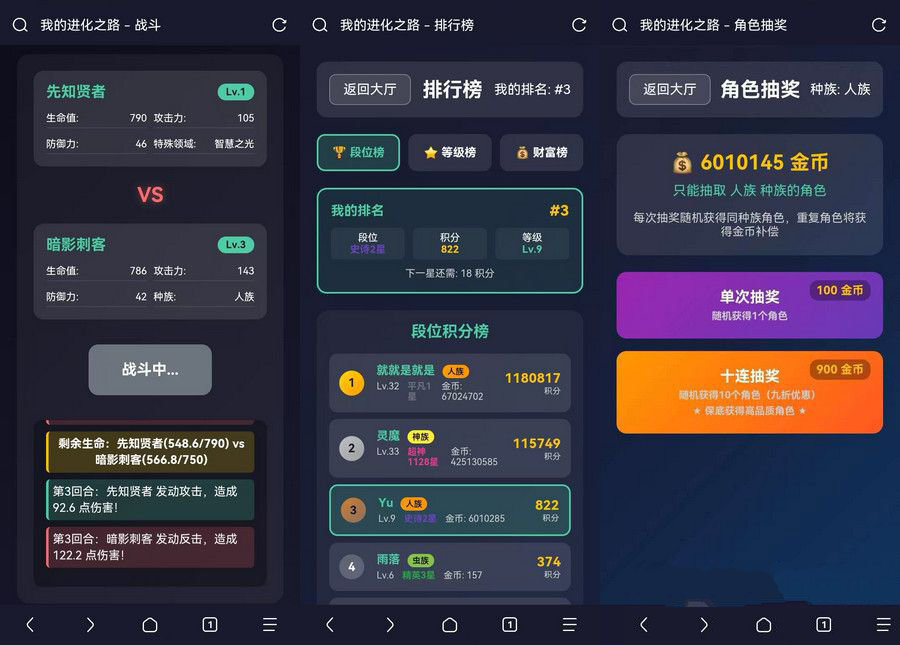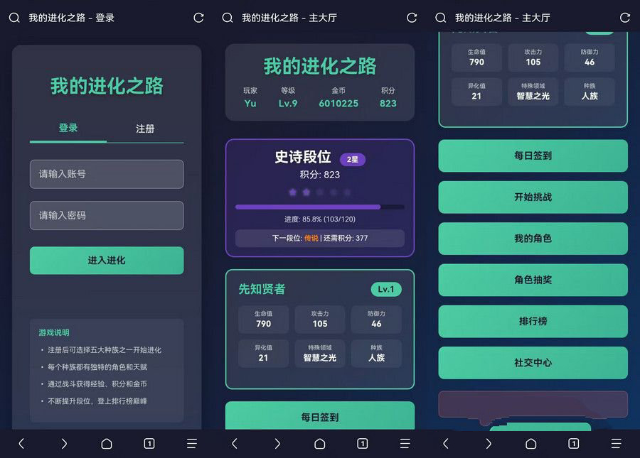 开源我的进化之路网页文字游戏源码带搭建教程,游戏名字我的进化之路在线战斗,回合制,从五大种族中选择你的种族,并随机获得一个角色,踏上进化之路!